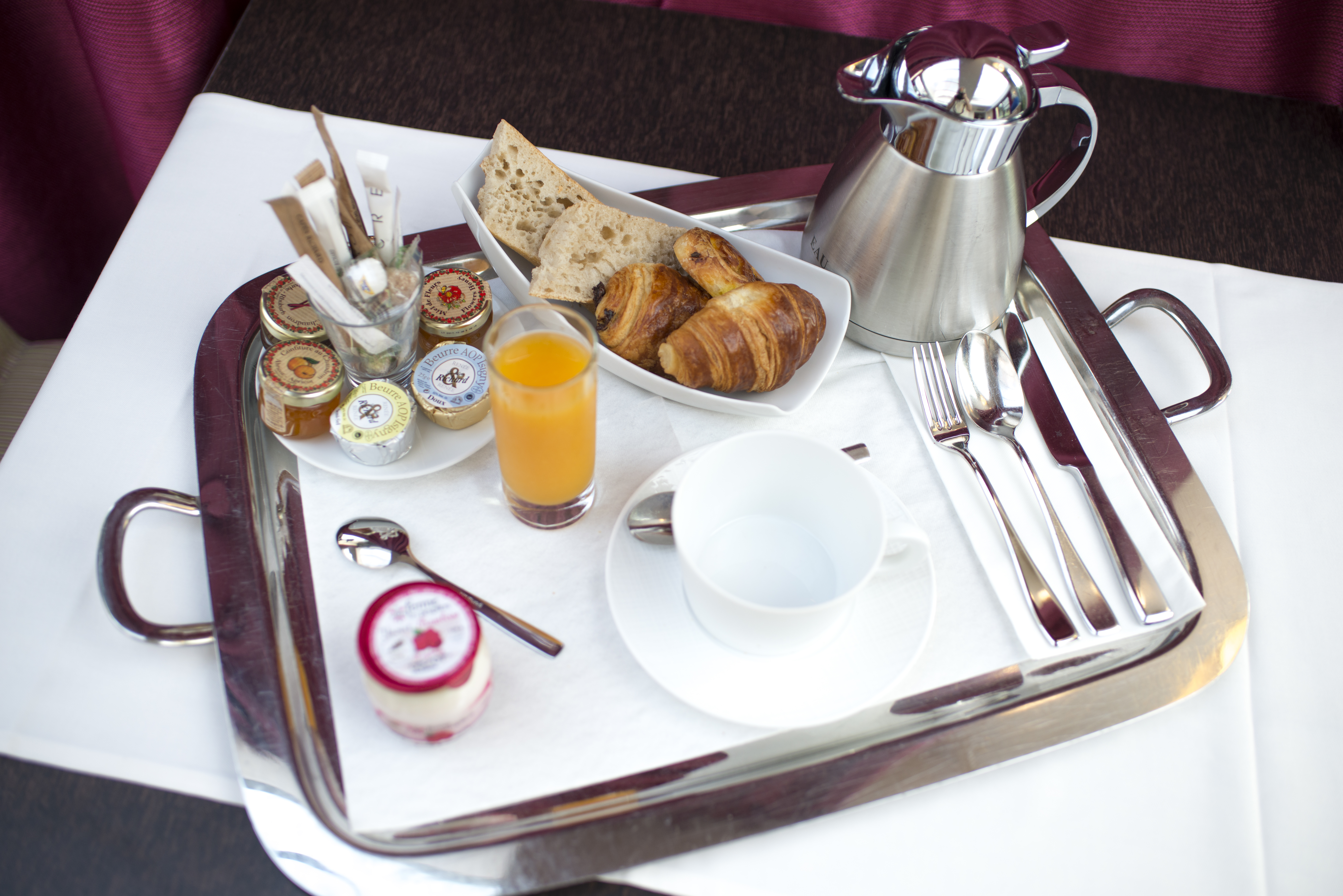 Après une bonne douchette dans ma graaaaaande salle de bain (où j’aurais bien re-traînassé une bonne heure au moins,) voilà que sonne l’heure du diner, toujours inclus dans notre formule, au restaurant de l’hôtel. Bilan : des desserts pas transcendants mais une carte des vins bien travaillée, et le salé franchement kiffant.