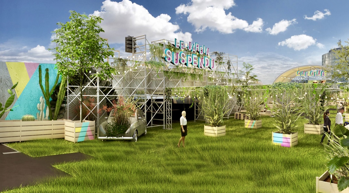8ème et dernier étage sur le toit d’un parking, 3500m2 au-dessus des nuages, vue panoramique à couper le souffle… Bienvenue au Jardin Suspendu, le plus grand rooftop végétal éphémère de la capitale, avec son oasis inattendu et perché, accessible mais bien caché.